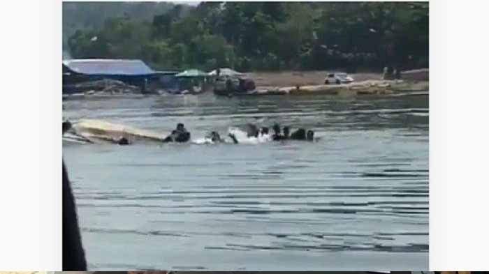 Sebuah perahu wisata terbalik di Waduk Kedung Ombo Boyolali, Sabtu (15/5/2021)/Istimewa via Tribun Jateng