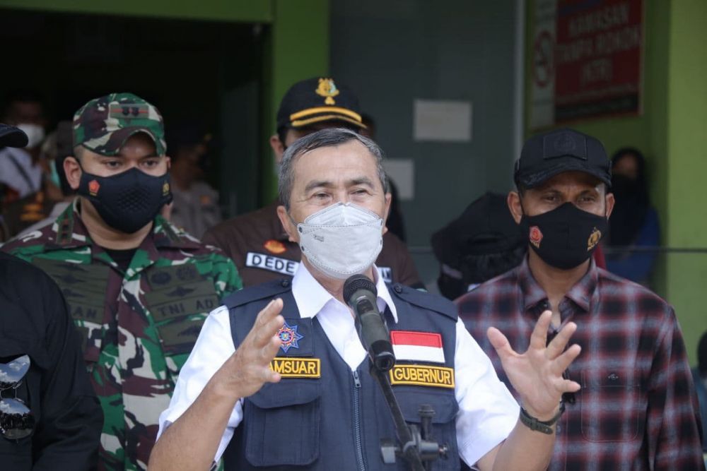 Gubernur Riau (Gubri) Syamsuar saat berkunjung ke Dumai tinjau pelaksanaan vaksinasi Covid-19 (23/5/21)/mcr