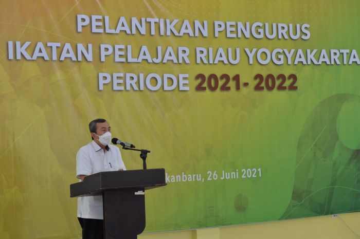 Jalurkota.com, Pekanbaru - Gubernur Riau (Gubri) Syamsuar menghadiri Pelantikan Pengurus Ikatan Pelajar Riau Yogyakarta (IPRY) di Aula Asrama Haji Provinsi Riau, Sabtu (26/6/2021).