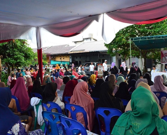 Antusias warga mengikuti reses Anggota DPRD Kota Pekanbaru Nurul Ikhsan di Jalan Sidodadi, Kelurahan Tengkerang Utara, Kecamatan Bukit Raya, Rabu (17/1/2024).