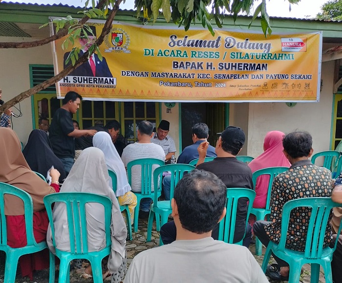 PEKANBARU - Anggota DPRD Pekanbaru dari Fraksi Hanura, H Suherman, menggelar reses kedua masa sidang 2023/2024 di Jalan Jenderal, Kelurahan Labuhbaru Timur, Kecamatan Payung Sekaki, Sabtu (20/1/2024).