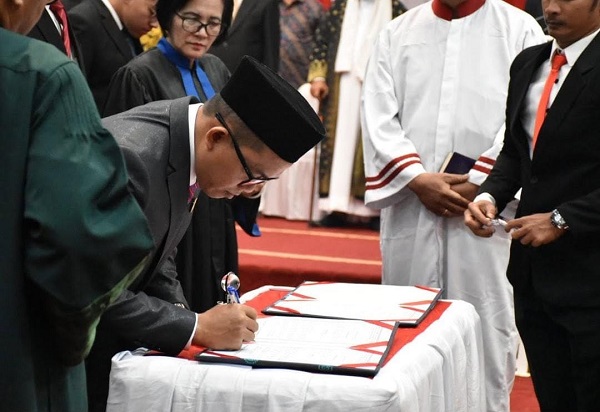 Penandatanganan berita acara oleh Ketua Sementara.