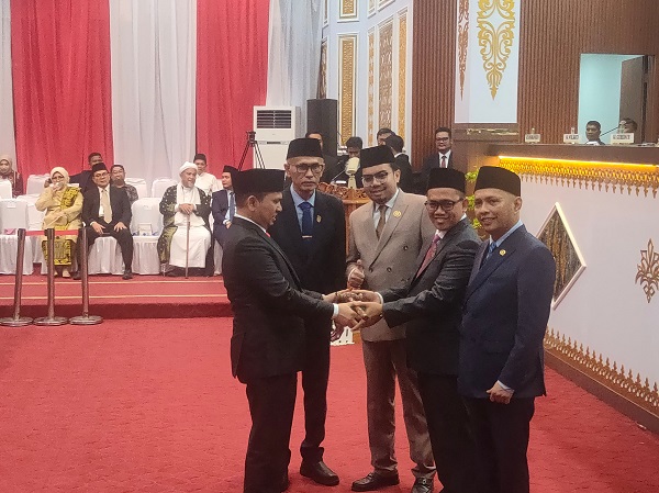 Penyerahan palu dari Ketua DPRD Pekanbaru sebelumnya kepada Ketua Sementara.