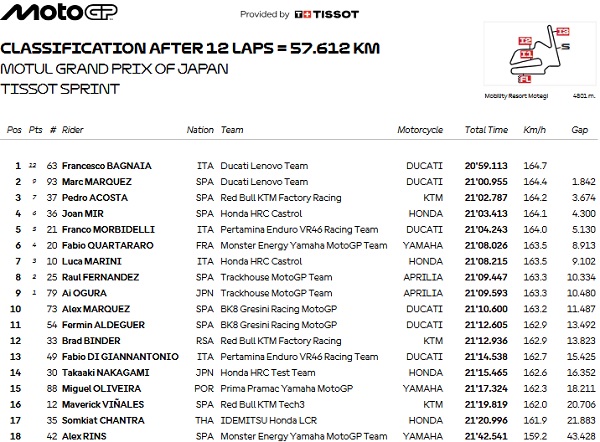 Hasil Sprint Race MotoGP Jepang 2025 :